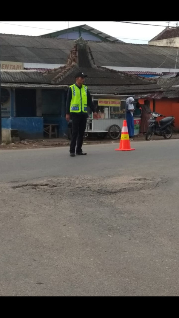TUMIJAJAR - Kondisi jalan raya di perempatan menuju SMK Muhammadiyah Tumijajar pagi ini (22/2/2019) terpantau ramai lancar. Terlihat dua anggota tim satuan pengamanan SMK MUTU dengan sigap membantu masyarakat yang hilir mudik dengan kendaraannya agar tetap berkendara dengan tertib.