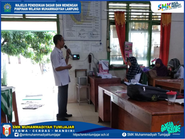 SMK Muhammadiyah Tumijajar -- Pengawas Pembina SMK MUTU, Tulangbawang Barat, Lampung, Bapak Ir. Ponidi Sunaryo, M.M., hari ini (24/04) mengunjungi SMK MUTU. Kunjungan beliau terkait sosialisasi jadwal pengadaan workhsop pembuatan perangkat pembelajaran bagi guru SMK MUTU.