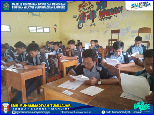 SMK Muhammadiyah Tumijajar -- Pelaksanaan Penilaian Akhir Semester (PAS) Genap TP 2018/2019 untuk siswa kelas XI SMK MUTU, Tulangbawang Barat, Lampung, hampir keseluruhan telah selesai dilaksanakan pada hari ini (25/05). Adapun jurusan yang telah menyelesaikan proses PAS Genap TP 2018/2019 antara lain jurusan Teknik Kendaraan Ringan (TKR), Teknik dan Bisnis Sepeda Motor (TBSM), dan jurusan Multimedia. Sementara itu, kedua jurusan lainnya yakni Tata Boga (TB) dan Perbankan Syariah (PBS) akan selesai pada hari Senin (27/05) mendatang, hal ini disebabkan adanya perbedaan jumlah mata pelajaran di masing-masing jurusan.