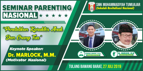 SMK Muhammadiyah Tumijajar -- Pelaksanaan seminar parenting tingkat nasional di SMK MUTU, Tulangbawang Barat, Lampung, tinggal menghitung hari. Pasalnya pelaksanaan seminar yang akan digelar pada hari Sabtu (27/07) mendatang ini tidak tanggung-tanggung dalam menghadirkan pemateri yang merupakan salah seorang motivator level nasional.