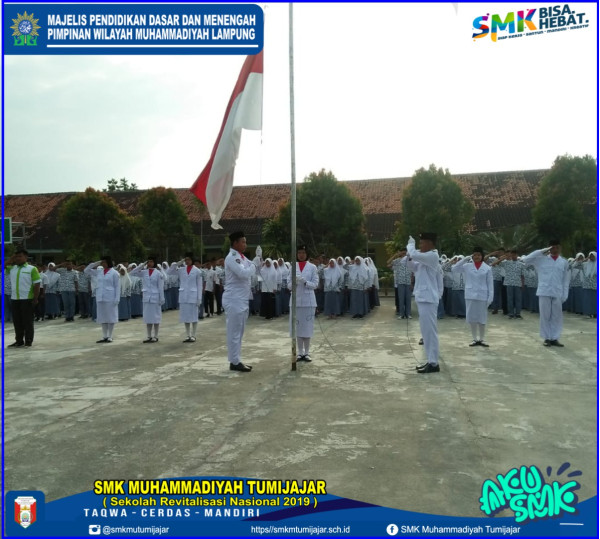SMK Muhammadiyah Tumijajar -- Pelaksanaan upacara penaikan bendera hari Senin (05/08) di SMK MUTU, Tulangbawang Barat, Lampung, berlangsung khidmat dan tertib. Sebelum pukul 07.30 WIB seluruh siswa terpantau sudah rapih membentuk barisan dengan arahan wakil kepala sekolah bidang kesiswaan beserta pembina IPM.