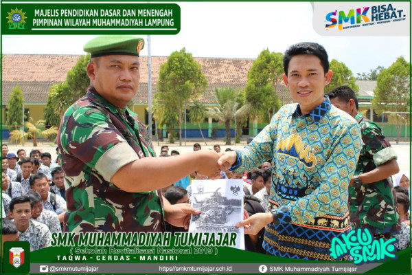 SMK Muhammadiyah Tumijajar--Komandan Koramil (Danramil) 412-05/TBU Kapten Inf. Gus Amirul Amin bersama Babinsa Teguh Rahayu melaksanakan kunjungan sekaligus memberikan sosialisasi penerimaan prajurit calon Tamtama PK TNI AD Gel II TA. 2019, kepada para peserta didik SMK Muhammadiyah Tumijajar, Kabupaten Tulangbawang Barat, Jumat (27/9).