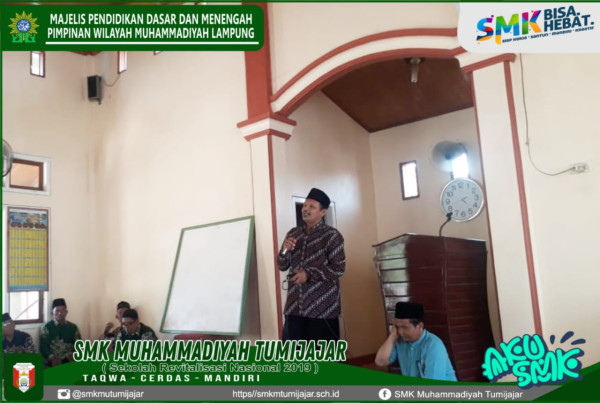 SMK Muhammadiyah Tumijajar – Pimpinan Daerah Muhammadiyah (PDM) Kabupaten Tulangbawang Barat mengelar safari pengajian rutin bulanan di Masjid Fatkhul Iman Tiyuh Margo Mulyo, Selasa (15/10).