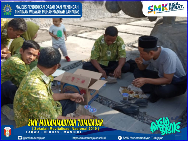 Rombongan SMK MUTU berangkat pukul 06.30 WIB dengan menggunakan bus dan mobil pribadi dari beberapa guru SMK MUTU. Selama perjalanan para guru dan PTK SMK MUTU terlihat senang dan bahagia menyambut Milad Muhammadiyah ke-107. Ditengah perjalan mereka berhenti sejenak di Tugu Kepala Penumangan, Tulangbawang Barat untuk sarapan bersama.