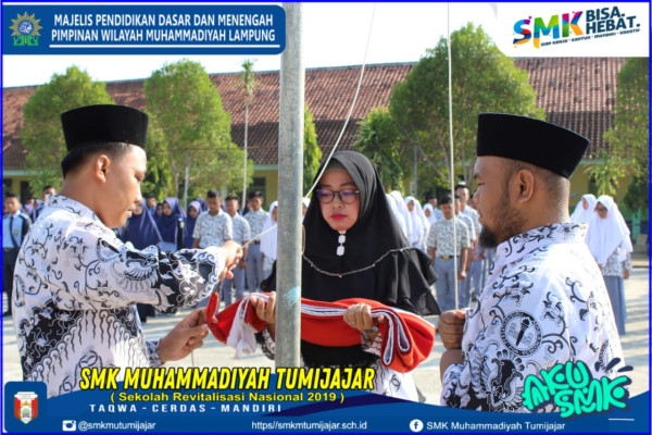 Senin, 25 November 2019, Keluarga besar SMK Muhammadiyah Tumijajar melaksanakan upacara untuk memperingati hari Guru dan HUT PGRI ke-74 dengan tema “Guru Penggerak Indonesia Maju”. Berbeda dari hari senin biasanya, untuk hari ini petugas upacaranya yaitu bapak/ibu guru. Mulai dari pemimpin upacara, pembukaan UUD 1945, do’a, hingga komandan peleton dilaksanakan oleh satpam SMK Muhammadiyah Tumijajar. Kegiatan upacara hari ini berjalan lancar, dengan dipimpin oleh pembina upacara adalah Ketua Komite SMK Muhammadiyah Tumijajar Bapak Sulisyono, M.Pd.T.