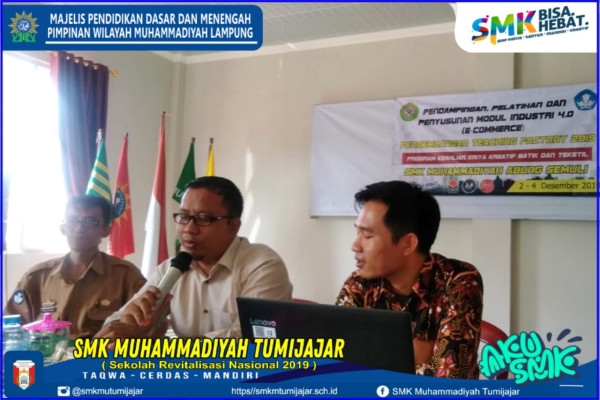 Direktorat PSMK tidak salah menunjuk Bapak Eko Esnawanto, S.Kom., salah satu guru SMK Muhammadiyah Tumijajar sebagai pemateri utama pada kegiatan Pendampingan, Pelatihan dan Penyusunan Modul Industri 4.0 (E-Commerce) dalam Pengembangan Teaching Factory Program Keahlian Kriya Kreatif Batik dan Tekstil di SMK Muhammadiyah Abung Semuli, Lampung Utara.