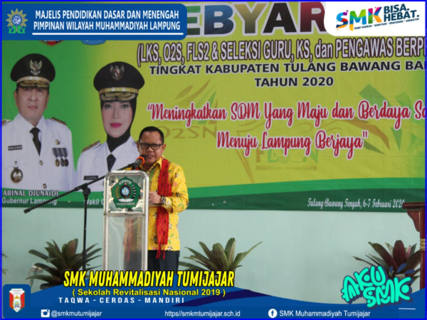 TULANG BAWANG BARAT – Pembukaan Gebyar SMK (LKS, O2SN, FLS2N, Seleksi Guru, Seleksi Kepala Sekolah dan Pengawas Berprestasi Tingkat Kabupaten Tulang Bawang Barat berlangsung meriah. Dengan mengusung tema "Meningkatkan SDM yang maju dan berdaya saing menuju Lampung berjaya". Sebanyak 17 SMK se Tulang Bawang Barat, salah satunya SMK Muhammadiyah Tumijajar hadir mengikuti pembukaan perlombaan Gebyar SMK tingkat Kabupaten yang berlangsung di Aula SMK N 1 Tulang Bawang Tengah, Kamis(06/02).