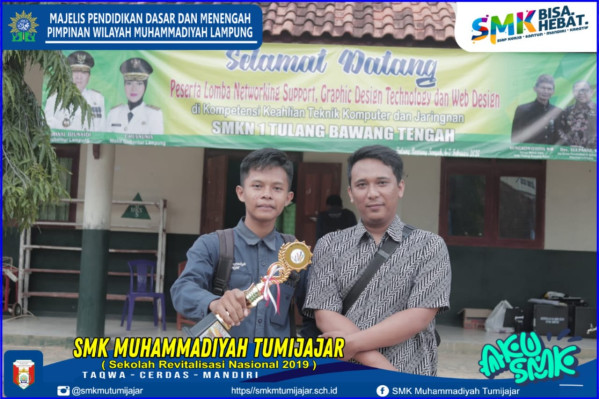 Irfan Firdaus Kelas XII MM. A dan Rudi Irawan MM. B dua siswa perwakilan SMK Muhammadiyah Tumijajar yang mejuarai kompetisi IT dalam cabang lomba Desain Grafis Juara 1 oleh Rudi Irawan dan Web Desain Juara 1 oleh Irfan Firdaus.