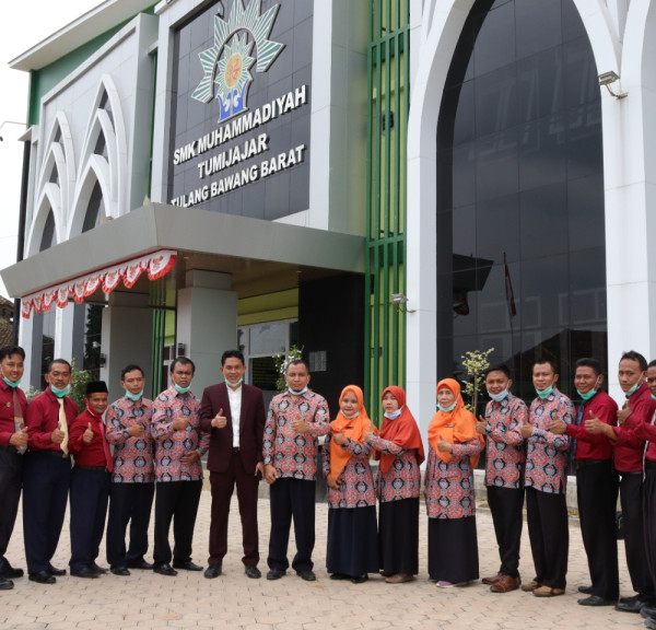 SMK Muhammadiyah Tumijajar - Ada suasana berbeda yang terasa di lingkungan SMK Muhammadiyah Tumijajar, Kamis(8/10/2020). Sejumlah dewan guru berpakaian seragam lengkap nampak berderet seperti mau menyambut tamu istimewa.