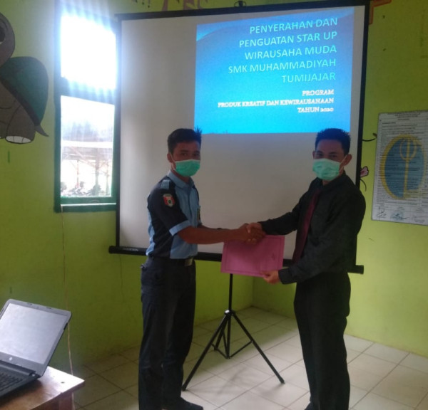 Tepat hari ini Kamis, 20 Oktober 2020, Bapak Syamsul Hidayat, S.Pd.I., selaku Kepala Sekolah telah menyerahkan dana bergulir startup wirausaha muda kepada 25 siswa SMK Muhammadiyah Tumijajar yang didampingi oleh 5 guru mata pelajaran Produk Kreatif dan Kewirausahaan (PKK).
