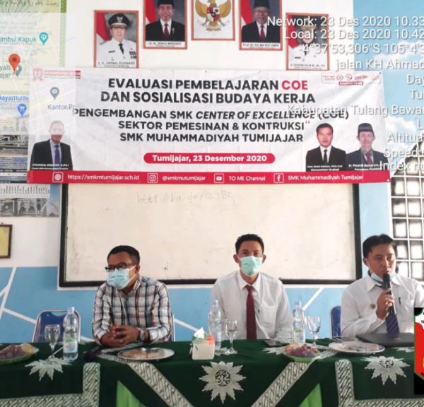 SMK Muhammadiyah Tumijajar - SMK Muhammadiyah Tumijajar telah melaksanakan workshop Sosialisasi Budaya Kerja Industri di Aula SMK Muhammadiyah Tumijajar, 23 Desember 2020 sebagai SMK Center of Excellence.
