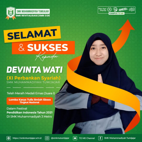 SMK MUHAMMADIYAH TUMIJAJAR - Siswi SMK Muhammadiyah Tumijajar berhasil menorehkan prestasi dalam kegiatan Lomba Karya Tulis Ilmiah Tingkat Nasional yang di adakan oleh SMK Muhammadiyah 3 Metro dalam Festival Pendidikan Indonesia Tahun 2021.