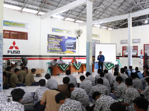 SMKM TO ME – Mengundang guru tamu merupakan metode baru untuk pergantian suasana baru dalam pembelajaran. Kegiatan ini diadakan untuk kelas X, XI, dan XII Teknik Kendaraan Ringan Otomotif (TKRO), materi tentang penguatan karakter dan budaya kerja industry 4.0 yang langsung disampaikan oleh M. Asrori selaku kepala mekanik PT. Lautan Berlian Utama Motor Metro.