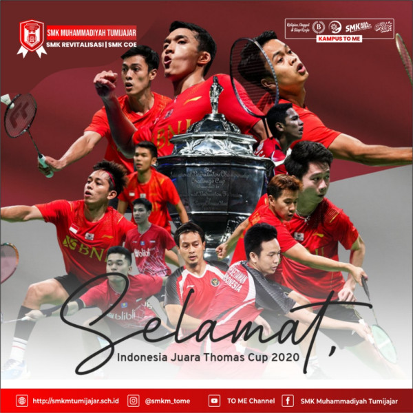 SMKM TO ME - Kemarin, Tim Badminton #Indonesia berhasil menyabet juara Thomas Cup 2020 setelah pertarungan sengit nan seru terjadi saat Indonesia melawan negeri Tirai Bambu, China di Ceres Arena, Aarhus, Denmark dengan kemenangan telak 3-0.