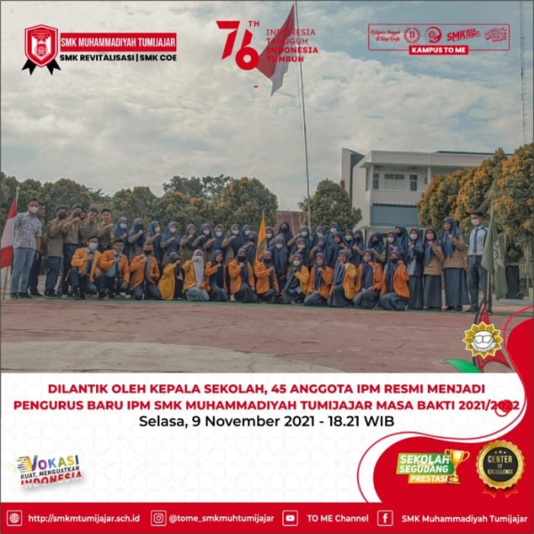 DILANTIK OLEH KEPALA SEKOLAH, 45 ANGGOTA IPM RESMI MENJADI PENGURUS BARU IPM SMK MUHAMMADIYAH TUMIJAJAR MASA BAKTI 2021/2022