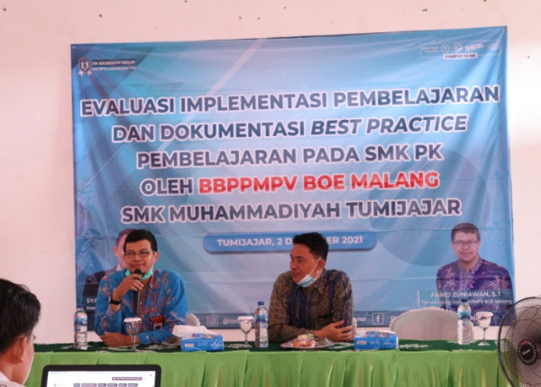 Berkaitan dengan hal tersebut, saat ini sedang berlangsung Kegiatan Pendampingan Implementasi Pembelajaran dan Dokumentasi Best Practice bagi SMK PK di SMK Muhammadiyah Tumijajar (2/12).