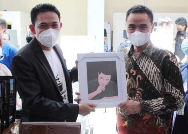 Saat, berkunjung di Booth, bapak Wikan Sakarinto, bersama ibu Ida didampingi Kepala SMK Muhammadiyah Tumijajar, Syamsul Hidayat, S.Pd.I., meninjau pameran TO ME Coffee, diikuti pemberian cindera mata kepada Bapak Dirjen berupa Vektor beliau, karya Rudi Irawan (alumni TO ME).