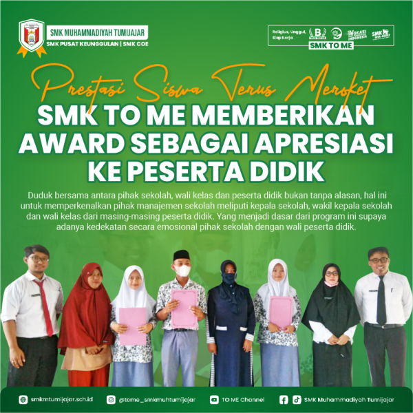 PRESTASI SISWA TERUS MEROKET! SMK TO ME MEMBERIKAN AWARD SEBAGAI APRESIASI KE PESERTA DIDIK