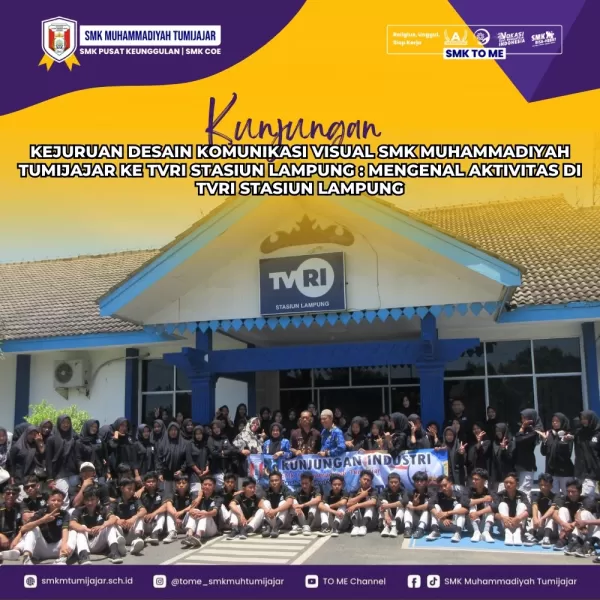 SMKTOME - Siswa siswi jurusan Desain Komunikasi Visual SMK Muhammadiyah Tumijajar melakukan kunjungan ke TVRI Stasiun Lampung dengan tema "Mengenal Aktivitas di TVRI Stasiun Lampung". Kegiatan ini bertujuan untuk memberikan wawasan mendalam kepada siswa mengenai dunia penyiaran dan proses produksi program televisi. Kunjungan ini diharapkan dapat memperluas pengetahuan siswa serta menginspirasi mereka dalam berkarya di bidang media.