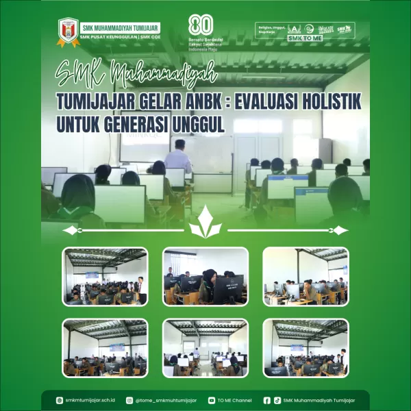 ANBK dibagi menjadi dua sesi dan dilaksanakan di laboratorium komputer Center of Excellence (COE) SMK Muhammadiyah Tumijajar. Kegiatan ini bertujuan untuk mengevaluasi mutu pendidikan di institusi tersebut, serta memastikan bahwa siswa memiliki keterampilan yang memadai dalam menghadapi ujian berbasis komputer.