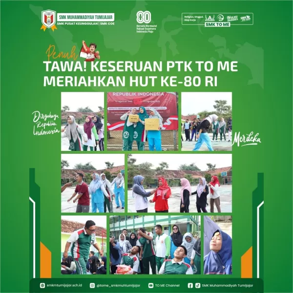 SMK TO ME - Suasana lapangan SMK Muhammadiyah Tumijajar pagi ini dipenuhi keceriaan. Puluhan PTK berkumpul untuk mengikuti beragam lomba dalam rangka memeriahkan Hari Ulang Tahun ke-80 Kemerdekaan Republik Indonesia. Kegiatan ini menjadi ajang silaturahmi dan menunjukkan semangat kebersamaan.