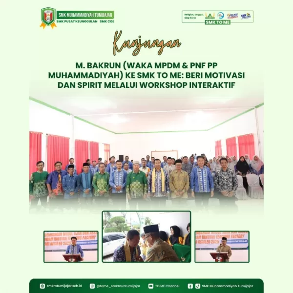 KUNJUNGAN M. BAKRUN (WAKA MPDM &PNF PP MUHAMMADIYAH) KE SMK TO ME: BERI MOTIVASI DAN SPIRIT MELALUI WORKSHOP INTERAKTIF