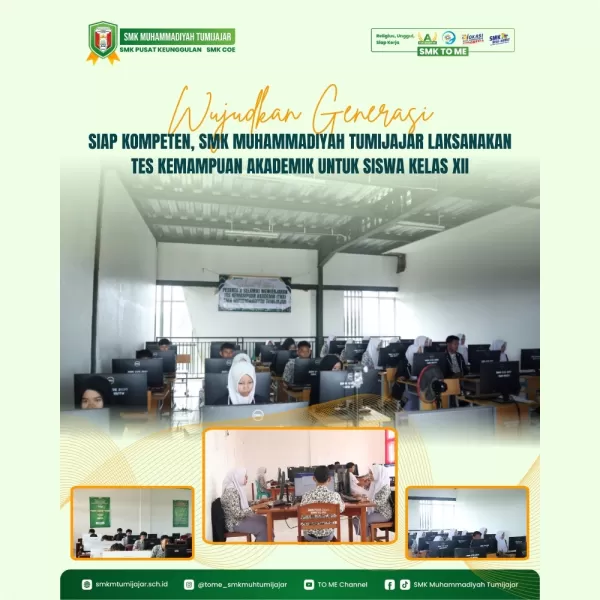 SMKTOME - SMK Muhammadiyah Tumijajar melaksanakan Tes Kemampuan Akademik (TKA) untuk siswa kelas XII pada hari ini, 3 November 2025. Tes ini merupakan bagian dari persiapan ujian akhir dan bertujuan untuk mengevaluasi kesiapan siswa sebelum mereka melanjutkan ke dunia kerja atau pendidikan tinggi.