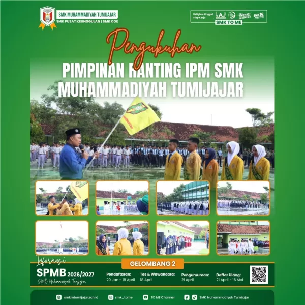 Dengan dikukuhkannya Pimpinan Ranting IPM SMK Muhammadiyah Tumijajar periode 2026–2027, diharapkan organisasi ini terus menjadi wadah kaderisasi pelajar Muhammadiyah yang berakhlak mulia, berjiwa kepemimpinan, serta adaptif menghadapi tantangan masa depan.(nva)