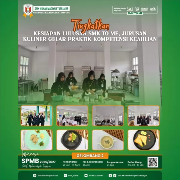 SMKTOME - SMK Muhammadiyah terus berkomitmen menyiapkan lulusan yang kompeten dan siap bersaing di dunia kerja. Salah satu upaya tersebut diwujudkan melalui pelaksanaan Praktik Kompetensi Keahlian bagi siswa kelas XII jurusan Kuliner. Kegiatan ini dilaksanakan sebagai bagian dari evaluasi akhir kemampuan siswa sebelum mereka dinyatakan lulus.