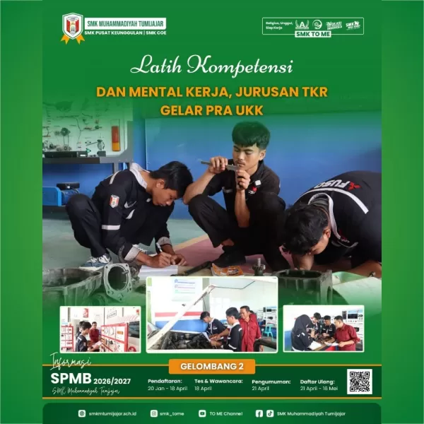 SMKTOME – Kompetensi Keahlian Teknik Kendaraan Ringan (TKR) SMK Muhammadiyah Tumijajar mulai melaksanakan kegiatan Pra Uji Kompetensi Keahlian (Pra UKK) pada Selasa (3/2/2026). Kegiatan ini diikuti oleh seluruh siswa kelas XII jurusan TKR dan dijadwalkan berlangsung selama tiga hari berturut-turut sebagai tahapan awal sebelum pelaksanaan Uji Kompetensi Keahlian (UKK).