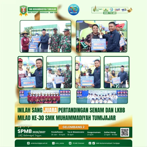 Melalui kegiatan Milad ke-30 ini, SMK Muhammadiyah Tumijajar berharap dapat mempererat silaturahmi antar sekolah serta menumbuhkan semangat sportivitas, kreativitas, dan prestasi di kalangan pelajar.(nva)