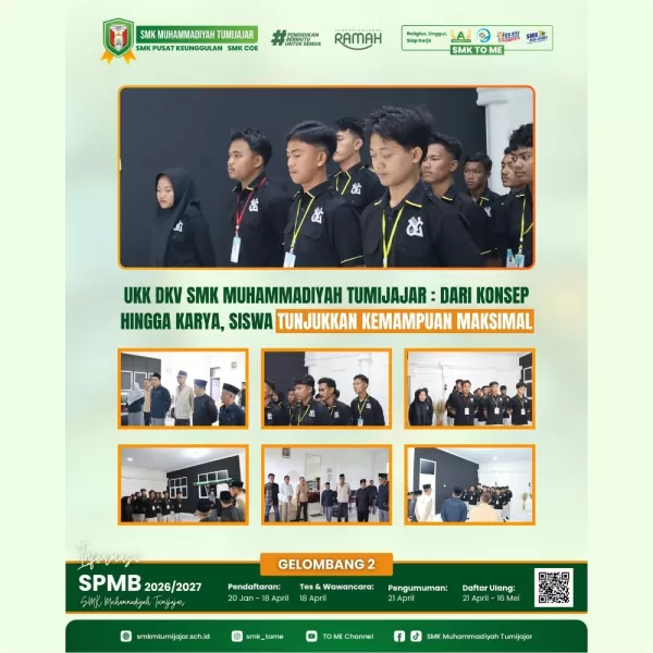 SMKTOME - Pelaksanaan Uji Kompetensi Keahlian (UKK) jurusan Desain Komunikasi Visual (DKV) SMK Muhammadiyah Tumijajar berlangsung dengan penuh semangat dan antusiasme dari para siswa. Kegiatan ini menjadi salah satu tahapan penting bagi siswa kelas akhir dalam mengukur kemampuan serta kesiapan mereka sebelum terjun ke dunia kerja maupun melanjutkan pendidikan ke jenjang yang lebih tinggi.