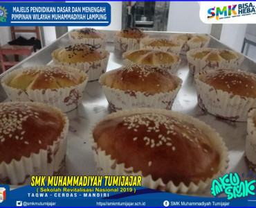 PEMBUATAN PRODUK BAKERY UNTUK TO ME CAFE SMK MUHAMMADIYAH TUMIJAJARRabu (11/12/2019) – 10.25 WIBSMK MUHAMMADIYAH TUMIJAJAR – Pengembangan inovasi di