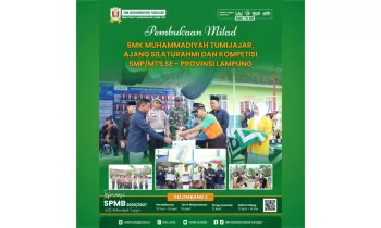 Senin, 9 Februari 2026 - 09.24 WIBSMKTOME - SMK Muhammadiyah Tumijajar secara resmi membuka rangkaian kegiatan Milad pada Senin, 9 Februari 2026 yang bertempat di lingkungan sekolah. Kegiatan pembukaan ini diikuti oleh seluruh civitas akademika serta tamu undangan dari Persyarikatan