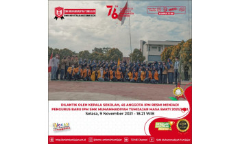 DILANTIK OLEH KEPALA SEKOLAH, 45 ANGGOTA IPM RESMI MENJADI PENGURUS BARU IPM SMK MUHAMMADIYAH TUMIJAJAR MASA BAKTI 2021/2022Selasa, 9 November 2021 – 18.21 WIBSMKM TO ME – Kepala SMK Muhammadiyah Tumijajar melantik 45 anggota baru Ikatan Pelajar Muhammadiyah periode kepengurusan