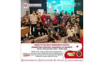 SMKM TO ME IKUTI WORKSHOP DIGITAL MARKETING STRATEGY NASIONAL DI JAKARTASenin, 8 November 2021 - 19.00 WIBSMKM TO ME - Program SMK Pusat Keunggulan (PK) bertujuan untuk menghasilkan lulusan yang langsung terjun di dunia kerja serta menjadi pusat peningkatan kualitas