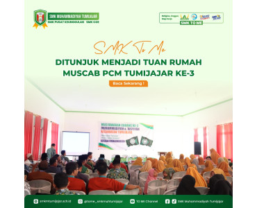 Rabu, 19 Juli 2023 - 11.14 WIBSMKTOME - Musyawarah cabang ke-3 Muhammadiyah dan Aisyiyah Kecamatan Tumijajar diselenggarakan dengan sukses di