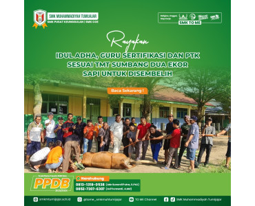 DUA EKOR SAPI KURBAN SMK MUHAMMADIYAH TUMIJAJARSelasa(21/7/2021) - 08.00 WIBSMKM TO ME - Fastabiqul khoirot berlomba-lombalah dalam kebaikan. Idul adha adalah hari raya umat islam pada hari ini diperingati peristiwa kurban,yaitu ketika nabi ibrohim, yang bersedia untuk mengorbankan putranya untuk