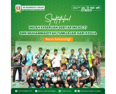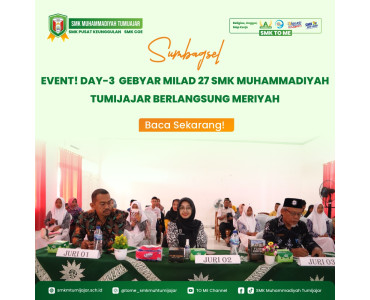 Selasa 17 Januari 2023 – 15.15 WIB SMK TO ME – Gebyar Milad ke 27 SMK Muhammadiyah Tumijajar memasuki hari kedua.