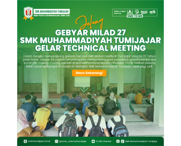 Selasa, 10 Januari 2022 - 15.45 WIBSMK TO ME - Dalam Rangka menyongsong gelaran hari jadi SMK Muhammadiyah Tumijajar yang