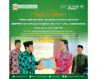MAJELIS DIKDASMEN PWM LAMPUNG BERI ANUGERAH KEPALA SEKOLAH BERPRESTASI KEPADA SYAMSUL HIDAYAT, S.Pd.I, DISERAHKAN OLEH WALI KOTA METROJum'at, 13 Januari