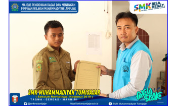 PENYERAHAN BEASISWA DARI SMK MUTU KEPADA 21 PESERTA DIDIKJumat(06/09/2019)--11.46 WIBSMK MUHAMMADIYAH TUMIJAJAR-- Wakil Kepala Sekolah Bidang Kurikulum, Bapak Sucipto,S.Pd., yang didampingi Bapak Lamidi,S.Pd., Wakil Kepala Sekolah Bidang Hubungan Masyarakat dan Bapak Tohari,S.Pd.I., Wakil Kepala Sekolah Bidang Ismuba, memberikan beasiswa kepada