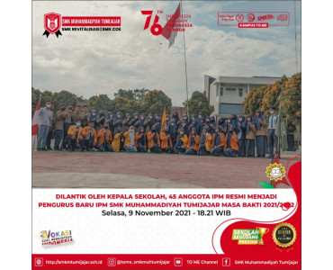 DILANTIK OLEH KEPALA SEKOLAH, 45 ANGGOTA IPM RESMI MENJADI PENGURUS BARU IPM SMK MUHAMMADIYAH TUMIJAJAR MASA BAKTI 2021/2022Selasa, 9 November
