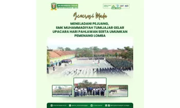 Senin, 10 November 2025 - 09.11 WIBSMKTOME - Dalam rangka memperingati Hari Pahlawan Nasional yang jatuh pada tanggal 10 November, SMK Muhammadiyah Tumijajar melaksanakan upacara bendera dengan penuh khidmat di lapangan sekolah. Upacara ini diikuti oleh seluruh guru, karyawan, dan