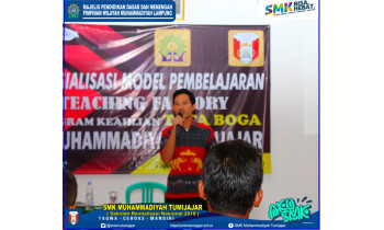 MENUJU IMPLEMENTASI PEMBELAJARAN BERBASIS INDUSTRI, SMK MUTU GELAR WORKSHOP PROGRAM TEACHING FACTORYSelasa (06/08/2019) - 11.00 WIBSMK Muhammadiyah Tumijajar -- Pengadaan Sosialisasi Model Pembelajaran Teaching Factory Program Keahlian Tata Boga SMK MUTU sebagai salah satu rangkaian pendampingan pelaksanaan program Teaching Factory