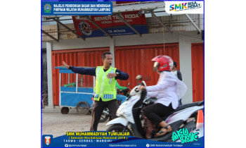 KESELAMATAN JADI PRIORITAS, SECURITY SMK MUTU BERI PELAYANAN KEPADA SISWARabu(7/8/2019) -- 09.53WIB SMK MUHAMMADIYAH TUMIJAJAR – Setiap pagi anggota security SMK MUTU Tulangbawang Barat, Lampung sebelum melaksanakan apel pagi mengatur lalu lintas dan membantu menyeberangkan anak-anak sekolah dan warga di jalan