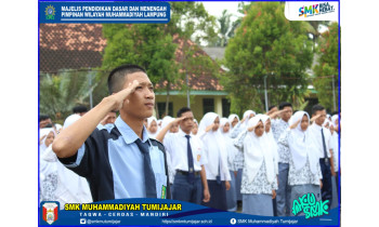 RIUH TEPUK TANGAN DI UPACARA PERDANA, KEPALA SMK MUTU GELORAKAN BRAND SEKOLAH REVITALISASI NASIONAL 2019Senin (22/07/2019) -- 15.00 WIBSMK Muhammadiyah Tumijajar -- Pelaksanaan upacara perdana di tahun pelajaran baru 2019/2020 SMK MUTU, Tulangbawang Barat, Lampung, berlangsung dengan tertib dan khidmat.