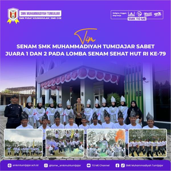 SMK Muhammadiyah Tumijajar mengucapkan selamat dan sukses atas pencapaian yang diraih pada perayaan HUT RI tahun ini, serta berharap agar prestasi ini menjadi motivasi untuk terus berprestasi di masa depan.(asr)